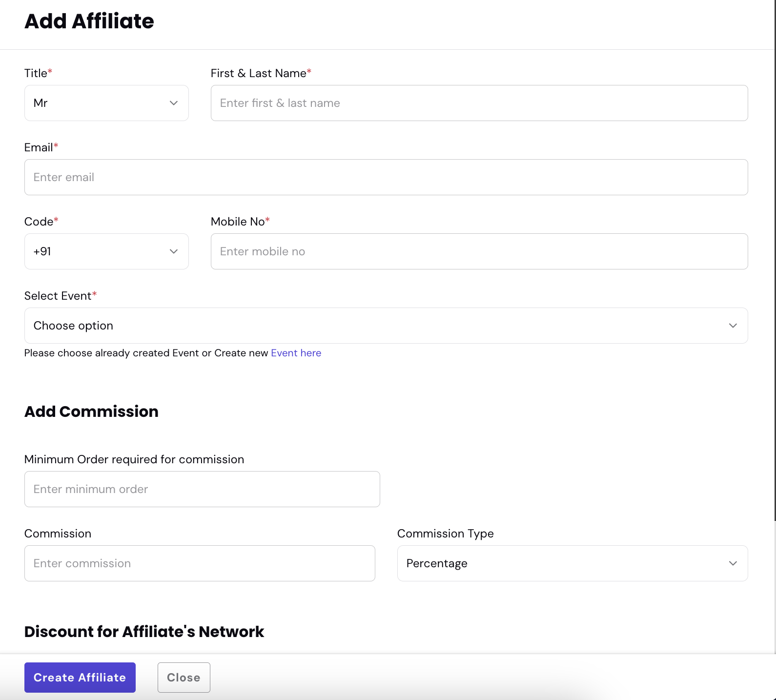 - Mobile number of the Affiliate
