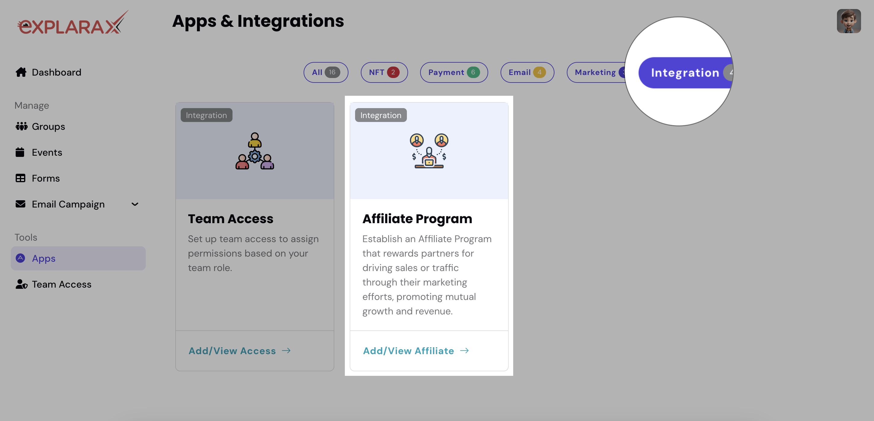 - Select Add/View Affiliate to set up or manage your affiliate program.