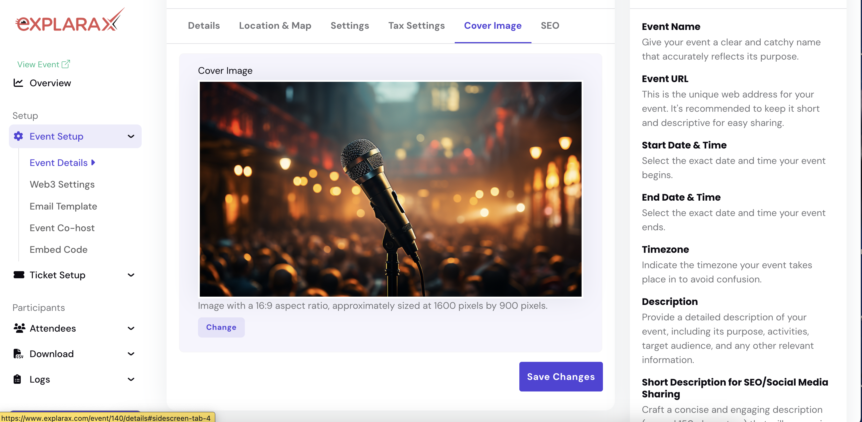- Finally, click Save Changes to update your event cover photo.