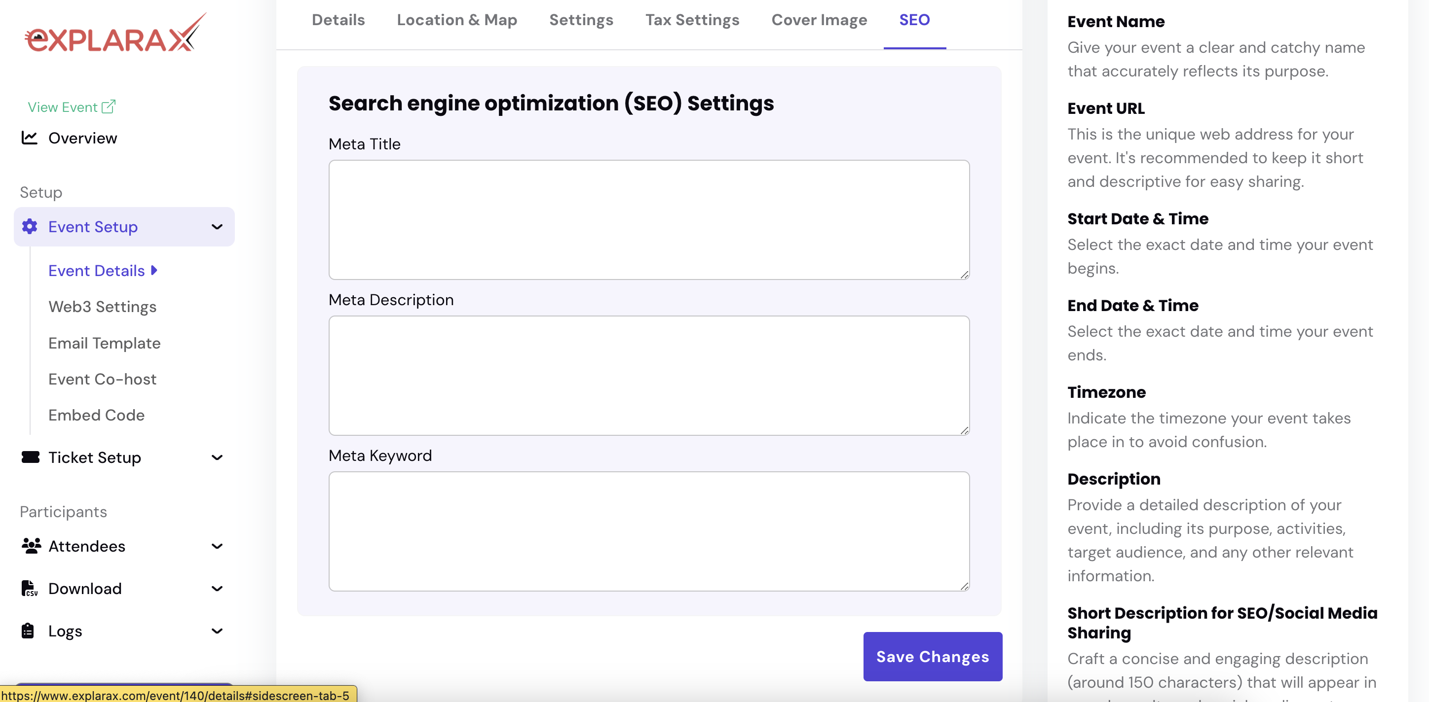 Note: Adding SEO details helps improve your Event’s visibility on search engines.