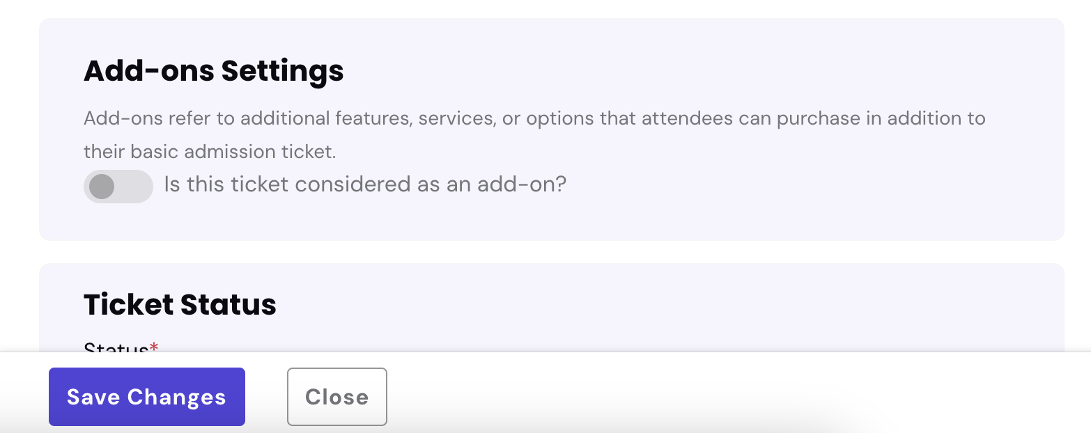 - Once the ticket is successfully created, enable the “Add-on” toggle for the new ticket.
